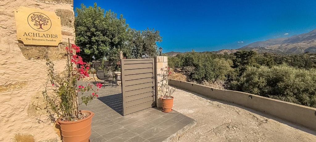 Το Achlades The Mountain Paradise Villas – Studio with pool! διαθέτει δωρεάν WiFi, εξωτερική πισίνα και κλιματισμό. Βρίσκεται στο Aletrouvárion, σε απόσταση 14 χλμ. από τους Αγίους Αναργύρους και τη Δημοτική Πινακοθήκη Χανίων. Το στούντιο προσφέρει θέα στο βουνό και στην πισίνα, ενώ απέχει επίσης 14 χλμ. από το θεματικό πάρκο Limnoupolis.
